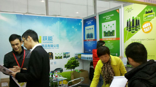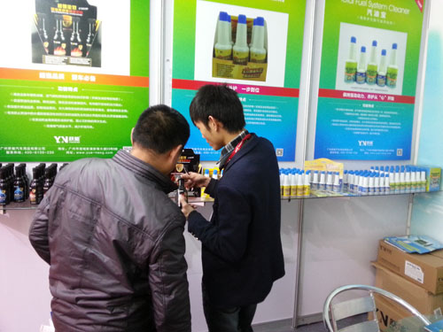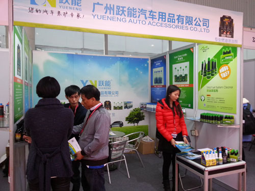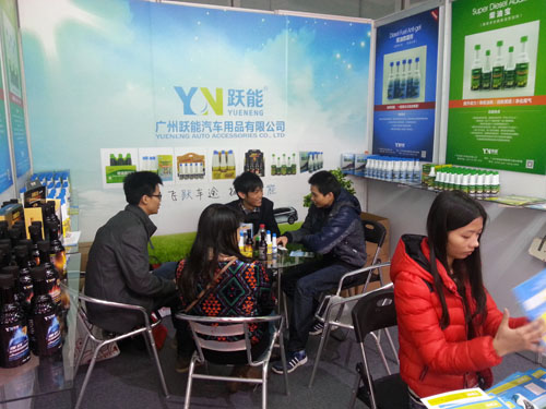 各地汽車配件生產(chǎn)商前來廣州躍能展臺(tái),共同交流燃油添加劑。